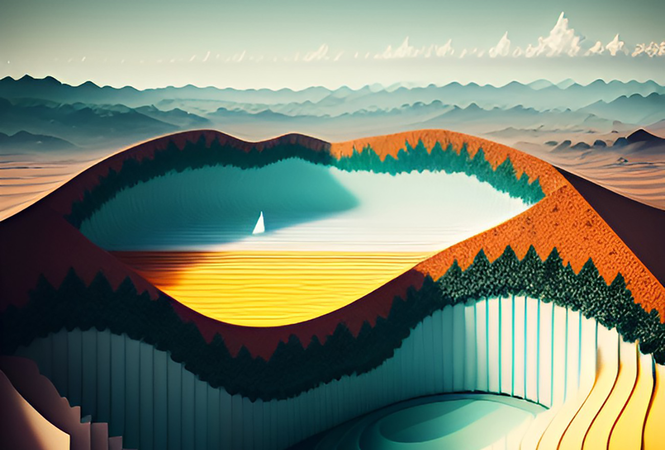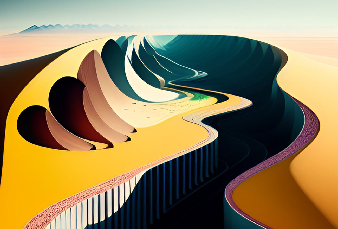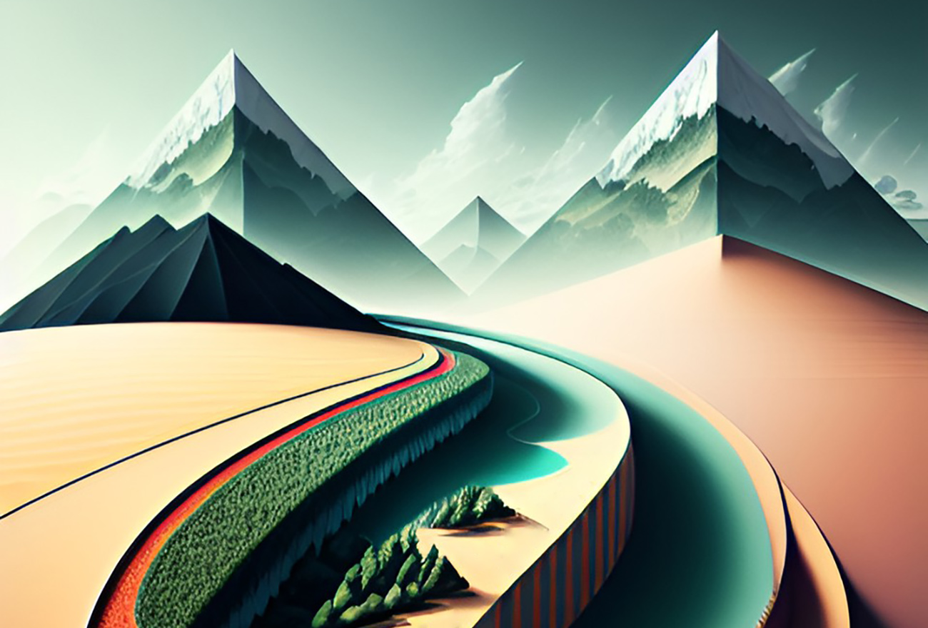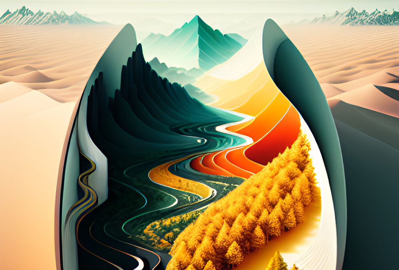 We are excited to present you some sliced utopian landscape illustrations which we digitally generated with the help of AI. We can bring even more creative ideas now to life within a short span of time. The newest AI tools offer numerous styles and various images for different preferences and creative projects.